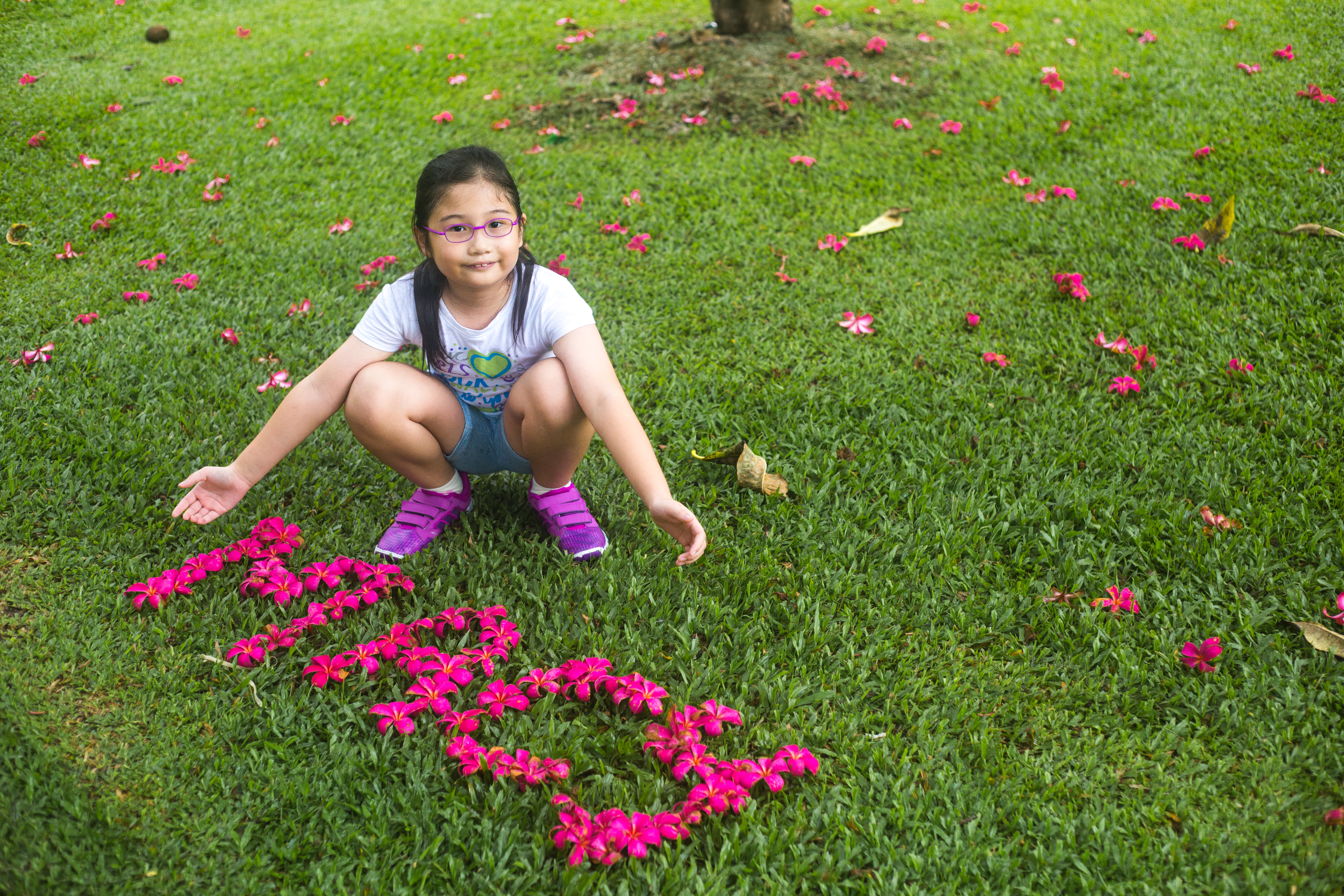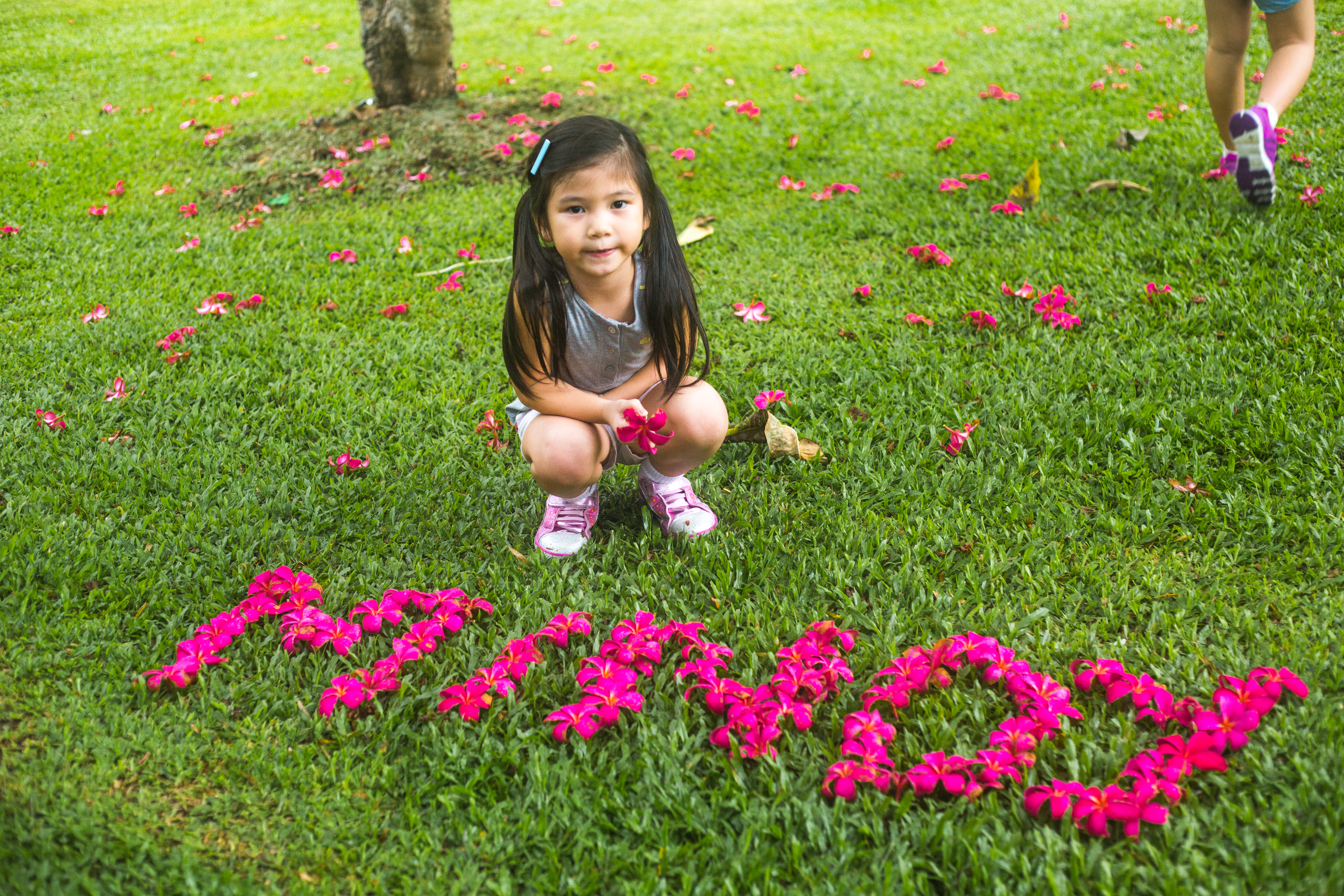 M&Ms enjoyed flower picking and arranging them into their names.