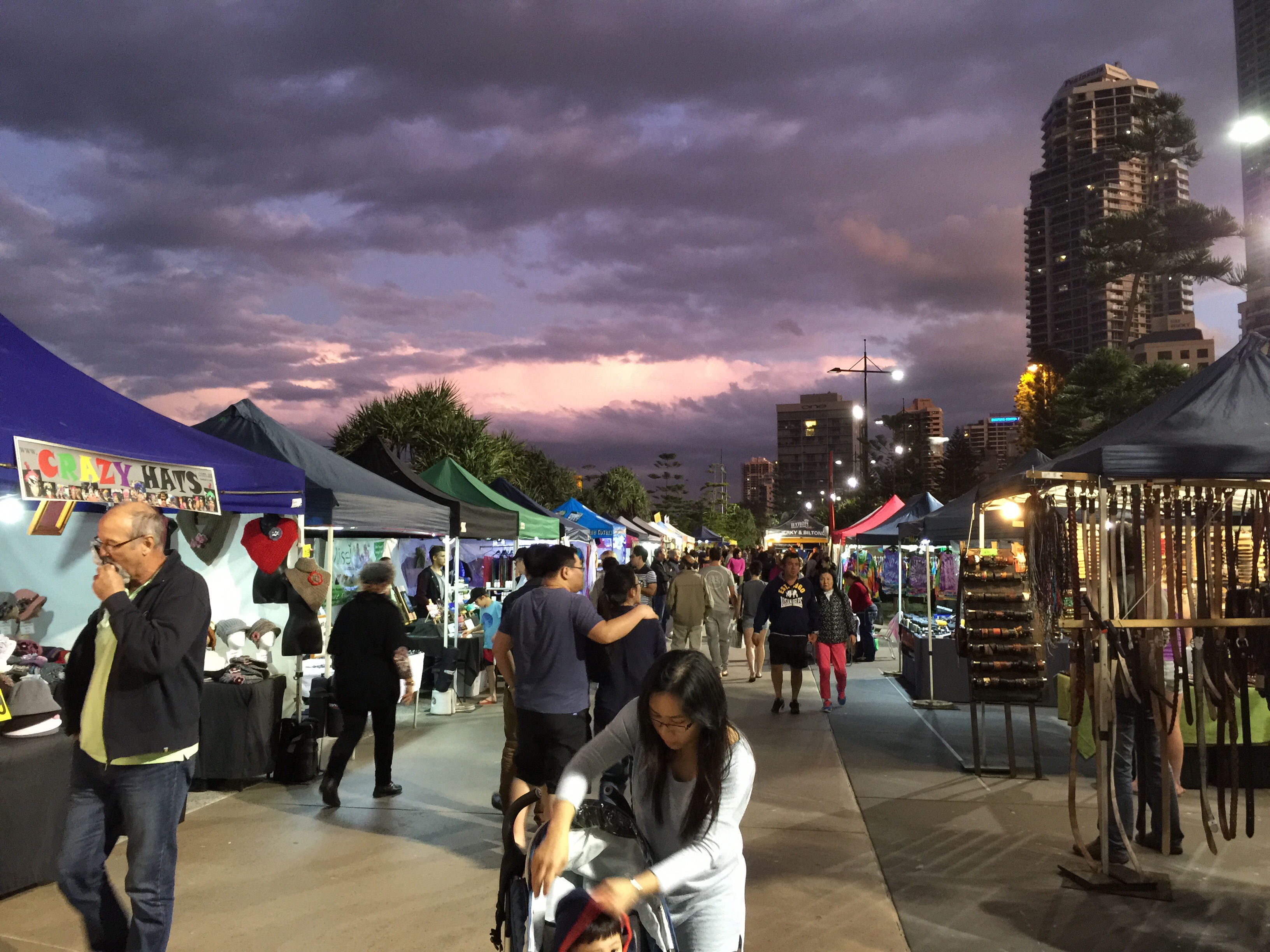 We were delighted to be staying right at the heart of Surfers Paradise where all the action is. After checking into our accommodation, we headed for the beach because there were beachfront markets that night.